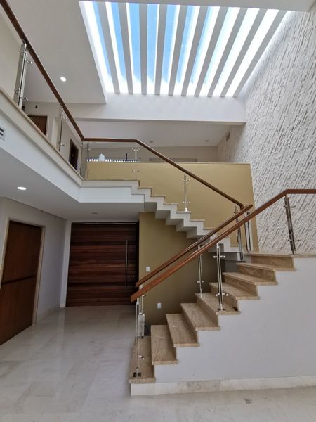 Casa con acabados muy finos el el Fraccionamiento Las Palmas Green, consta de 4 habitaciones con baño y vestidor, pisos y paredes forradas de Mármol, doble altura muy amplia en sala comedor, area de TV, jardin con alberca y garage para 4 autos, incluye aire acondicionado.