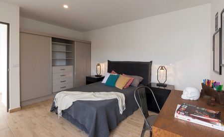 -3 recamaras, principal con vestidor y baño propio, secundaria con closet y baño propio
