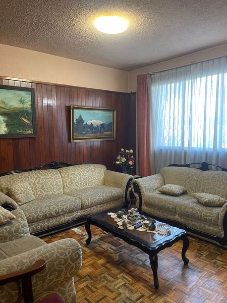 5 recamaras, 1 despacho, y departamento pequeño, cuarto de servicio con baño.