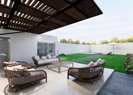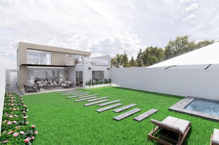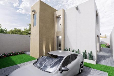 3 recámaras, 2 baños completos, sala, comedor, cocina equipada, área de lavado, terraza, jardín, alberca, estacionamiento para dos autos.