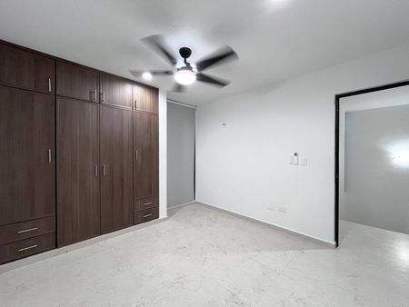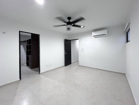 - Recámara principal con closet vestidor, baño completo, aire acondicionado, ventilador y persiana