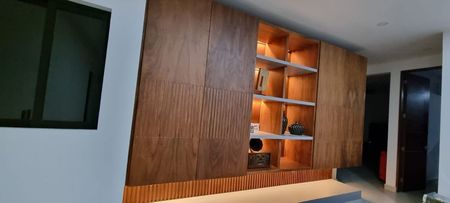 Sala de TV, terraza tipo roof, 3 recámaras con vestidor y baño cada una, la principal cuenta con vestidor - tocador, doble lavabo, amplia regadera y vapor.