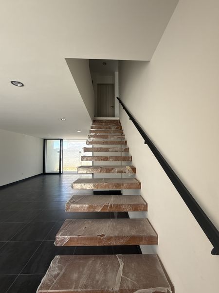 Las escaleras voladas dan acceso a una acogedora sala de TV con terraza, clóset de blancos y 2 recámaras secundarias con baño completo cada una y clóset. La recámara principal cuenta con vestidor y baño privado, brindando privacidad y confort.