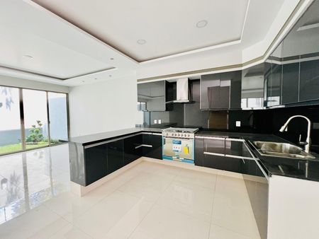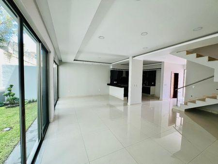 PLANTA BAJA: COCHERA PARA 2 VEHICULOS, AMPLIA SALA Y COMEDOR, COCINA INTEGRAL CON BARRA DESAYUNADORA EN ACABADOS EN GRANITO, JARDIN POSTERIOS, ESTUDIO, UN BAÑO COMPLETO,CUARTO DE LAVADO.