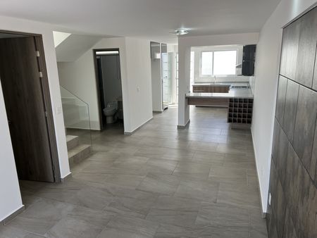 Esta estupenda casa cuenta con construcción y acabados de primera, que la hacen muy agradable a la vista , en planta baja: cochera semi techada para 2 autos, sala-comedor, cocina integral equipada, cuarto de lavado amplio, jardín pequeño, estudio cerrado o posible recámara, baño completo.