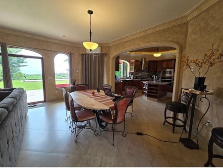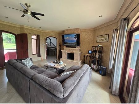 Cuenta con sala, comedor, dos recámaras, un baño-jacuzzi (éste podría ser otra recámara) y dos baños completos, cocina equipada, amplia terraza, cochera para cuatro autos, aire acondicionado, se vende amueblada o sin amueblar, gimnasio, techos abovedados, bonito domo, terraza, una terraza en medio del jardín trasero, árboles frutales y animales de granja. Tienes un filtro de agua, un generador que te mantendrá alimentado cuando falte la electricidad, un maizal, gallinas para poner huevos, flores y plantas para disfrutar de la naturaleza en medio de uno de los lugares más agradables. No hay clima como el de la zona del Lago de Chapala en el mundo.