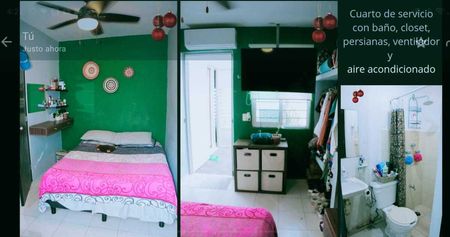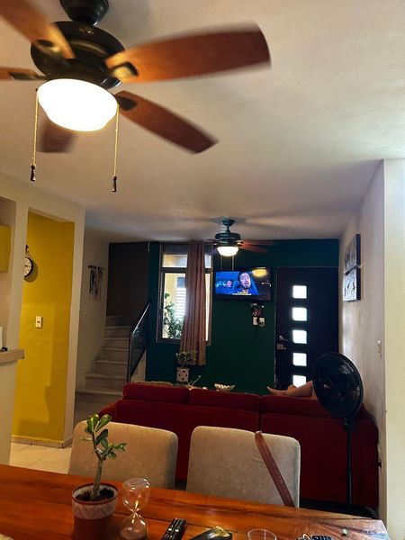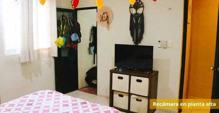 3 cuartos arriba, uno abajo. Dos baños completos y un medio baño.