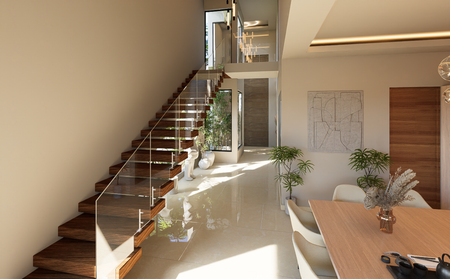 - Cristales templados de 9 mm en regaderas y barandal de la escalera
