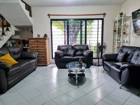 Casa con buena distribución. Traspasando el zaguán encontramos patio garaje para más de 2 autos, jardín con espacio para hacer alberca o Jacuzzi.
