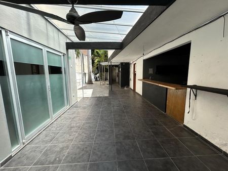 En la parte posterior cuenta con un amplio patio al aire libre, terraza techada, area de barra, un departamento completamente independiente de dos pisos con amplio con baño completo.