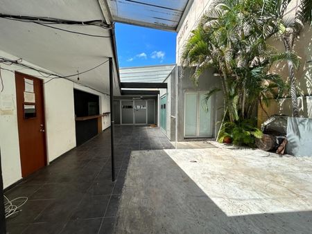 Al frente cuenta con estacionamiento para tres autos, en la parte de la entrada principal de el edificio cuenta con cuatro areas subdivididas y tres baños.