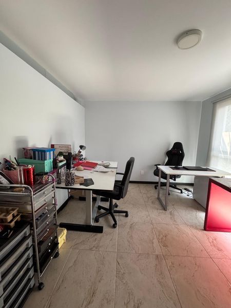 Planta baja: cochera cubierta para 2 vehículos con acceso independiente para cada uno, vestíbulo de acceso, estudio, baño completo, estancia, comedor, cocina con desayunador. Cuenta con terraza la cual conecta a un espacio adapatado actualmente como bar.