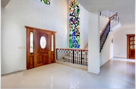 Amplia residencia con piscina propia, frente a las canchas de tenis. Ubicada cerca del Colegio Cumbres y a 10 minutos de Tabasco 2000. Cuenta con excelente mantenimiento y extrema seguridad.