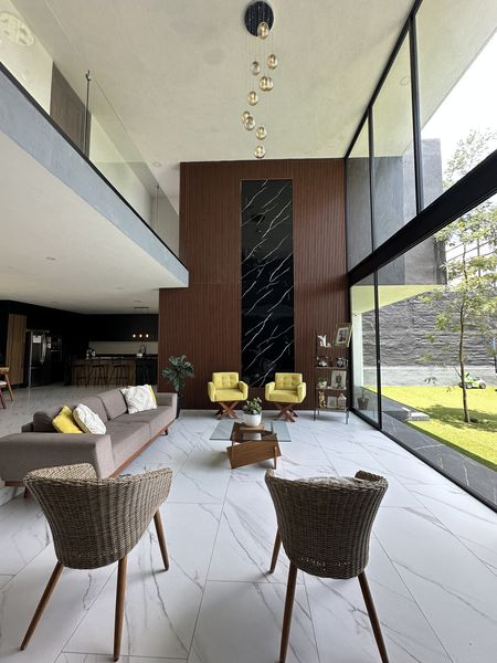 Residencia muy bien ubicada en coto privado con vigilancia 24/7. Cuenta con una arquitectura y diseño espectacular de doble altura y excelente vista a la ciudad, lo que le permite también tener una iluminación Natural, por sus grandes vitrales e iluminación Led, terminados en madera de Parota.