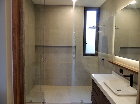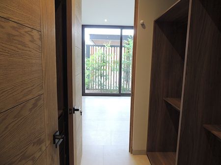 Amplia terraza con alberca (caldera) semi techada y medio baño de visitas para su uso, jardín extendido que se incorpora a las áreas verdes del cluster, dando más vista a esta zona. Cuenta con recámara con baño completo en PB además de un medio baño de visitas. En el primer nivel encontramos un área de t.v. y tres recámaras, la principal con un generoso vestidor, doble lavabo, sensores de luz y una oficina interior, además de una agradable terraza con vista a la zona protegida. Las recámaras secundarias, tienen su walk in closet y baño completo cada una.