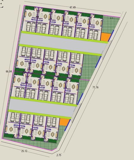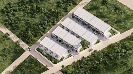 Cada unidad consistirá en planta baja las áreas para sala, comedor, cocina, espacio para la alacena baja, ½ baño, terraza. La planta alta 2 recamaras con espacio para closet vestidor cada una y área de cuarto de lavado.