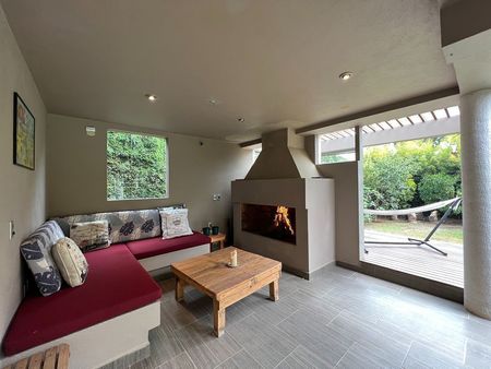 Casa Tulipanes en Avándaro, Valle de Bravo está en una exclusiva comunidad residencial. Es conocida por su belleza natural y su alto nivel de privacidad.