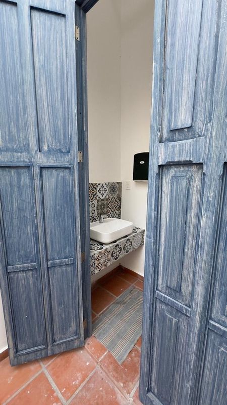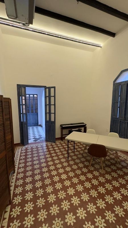 3 espacios para privados, dos de ellos comparten un baño completo, medio baño, dos salas para juntas amplias, recibidor, patio con medio baño y un espacio para cocineta, tiene su entrada principal en Guerrero y otra contigua (a la cocineta) hacia Juárez