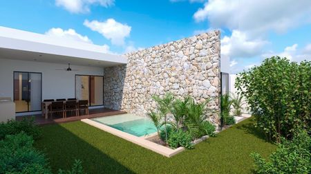 ENTREGA INMEDIATA Casa de Una Planta con 3 recamaras y Alberca en Privada Residencial a 5 Km de periférico de Mérida en Cholul.
