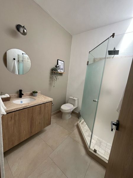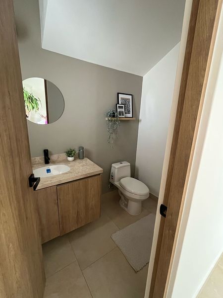 Planta alta: Master suite con walk-in closet, baño completo y balcón. Dos recamaras secundarias con closet, baño completo y sala familiar.
