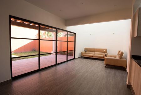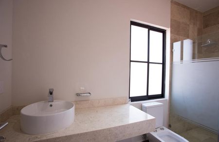 La casa cuenta con tres recámaras con closets y tres baños completos, todos con cubiertas de mármol y pisos de cantera. La cocina integral abierta con cubierta de granito da al comedor, que está iluminado por un gran ventanal. El amplio jardín con terraza y jacuzzi es el lugar ideal para relajarse y disfrutar del aire libre. La confortable sala con techo de doble altura ofrece una gran sensación de espacio y claridad.