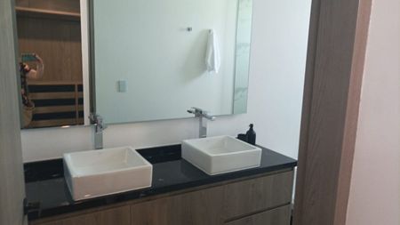 3 recamaras cada una con baño, la princiopal con vestidor, amplios closets, área de tv, roof amplio con baño completo,closet de blancos.