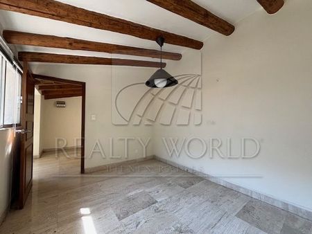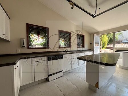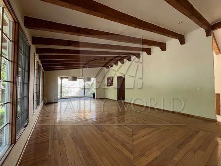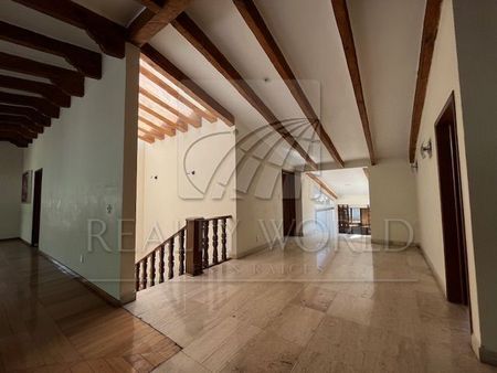 Cuenta con amplia sala comedor, cocina integral, desayunador, baño de visitas, 4 recámaras con baño, 2 de ellas con vestidor, las otras 2 con closet. Estudio y sala de juegos con bar, cuarto de servicio, cuarto para vigilancia con baño.