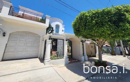 Amplia e iluminada casa en venta en exclusivo fraccionamiento de Ensenada. Al entrar por la puerta principal serás recibido por una elegante escalera doble que es el corazón de la casa, cuenta con 4 recámaras con closets y 4 baños completos. La recámara principal tiene un amplio walk in closet, baño completo y una hermosa terraza. Una de las habitaciones está planta baja nivel, con baño completo, ideal para visitas o adultos mayores. Cuenta con recibidor, sala, comedor, espaciosa cocina con superficie de granito y una isla que se antoja para reuniones en donde los anfitriones pueden interactuar con sus invitados. Adicionalmente, cuenta con múltiples espacios como un taller para hobbies, 1 balcones para tomar el fresco, amplia lavandería interior, almacén, patio con asador y 2 garajes, uno cerrado y otro bajo una pérgola. Su jardín es espectacular, con hermosos árboles y plantas que dan una cálida bienvenida a esta bella propiedad.