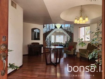 Spacious and bright home for sale in an exclusive Ensenada subdivision. Upon entering the front door you will be greeted by an elegant double staircase that is the heart of the house, it has 4 bedrooms with closets and 4 full bathrooms. The master bedroom has a large walk in closet, full bathroom and a beautiful terrace. One of the bedrooms is on the first floor, with full bathroom, ideal for visitors or seniors. It has a foyer, living room, dining room, spacious kitchen with granite countertop and an island that is perfect for meetings where the hosts can interact with their guests. Additionally, it has multiple spaces such as a workshop for hobbies, 1 balcony to take the fresh air, large indoor laundry, storage, patio with barbecue and 2 garages, one closed and one under a pergola. Its garden is spectacular, with beautiful trees and plants that give a warm welcome to this beautiful property.