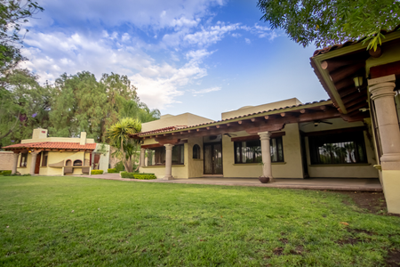 Casa de estilo Mexicano diseñada por el Arq. Vargas, ubicada frente al Hoyo 17 del Campo de Golf de Juriquilla.