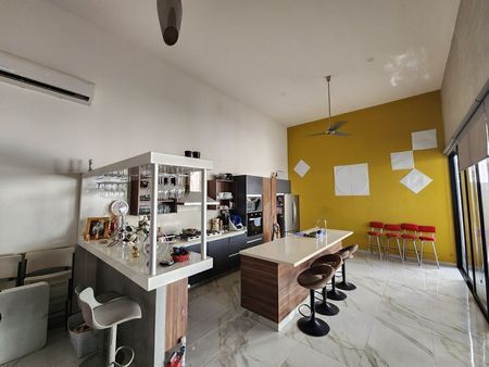 Casa de Una Planta en venta con 4 recámaras con baño y espacio de vestidores, 1 sin baño. en Privada con amenidades y paneles solares en Mérida, Yucatán.