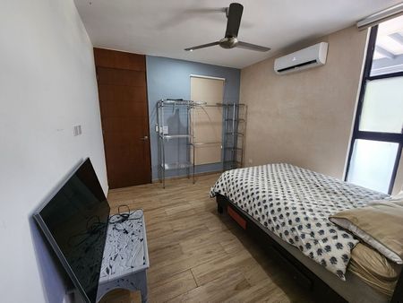 *Recámara #3 igual con amplia puerta corrediza que da vista a la piscina, cuenta con vestidor, baño propio completo, aire acondicionado y ventilador de techo.