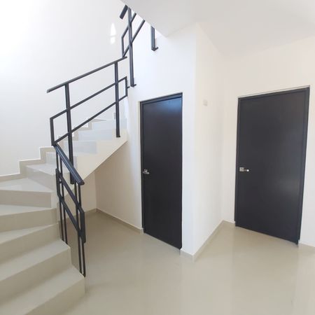 •Planta baja: Area de sala, cocina, comedor, 1/2 baño, 1 recamara con baño completo y vestidor, estacionamiento para dos carros, pasillo de servicio, área de lavado, patio trasero.