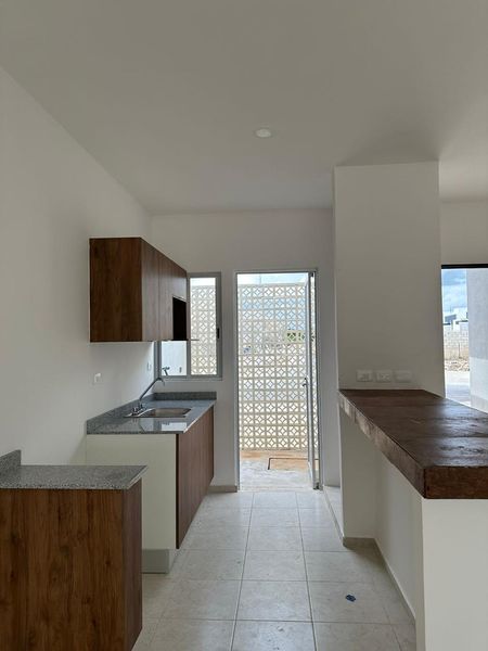 La cocina integral tiene gavetas altas y bajas fregadero y cubierta de pasta en barra desayunadora y cocina.
