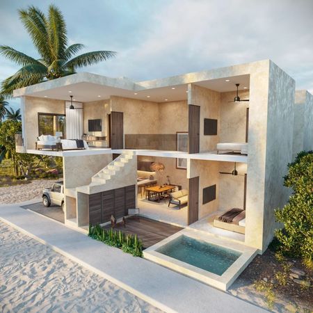 Desarrollo de 9 amplias casas con Alberca en calle asfaltada a 150 metros de la Playa Chicxulub Puerto.