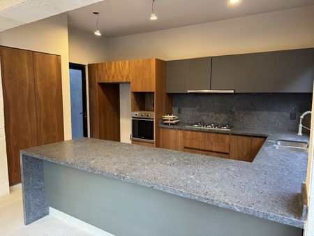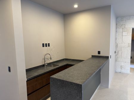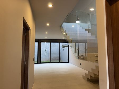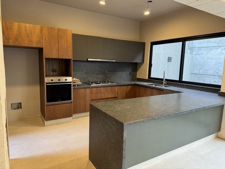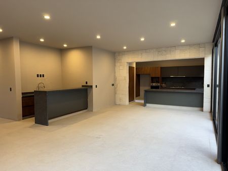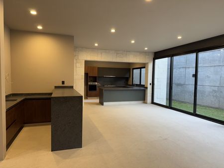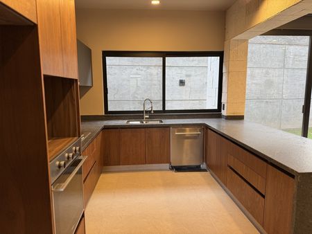 Planta baja: garage techado para 2 autos, baño de visitas, recámara con baño, bar, sala, comedor, cocina equipada, cuarto de servicio , centro de lavado, acceso de servicio.