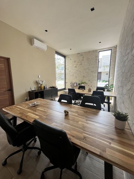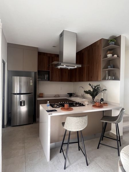 Acabados únicos como cocina con cuarzo, gabinetes hasta techo, canceles de cristal templado, pasto sintético en frente y en jardín, canceles, espejos, etc.