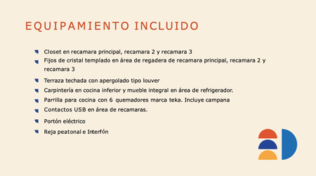 - Recámara 2 con área de clóset vestidor baño completo. Incluye