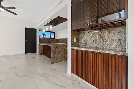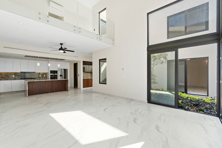 Ingrese a esta nueva villa de 2 pisos, diseñada meticulosamente, donde los acabados de calidad se combinan con el lujo moderno. La casa está diseñada cuidadosamente con exquisitos detalles de madera de Parrota en todas partes, incluida la cocina, las puertas, los armarios y los gabinetes del baño. La gran entrada impresiona de inmediato con un pasillo de dos pisos y una vista impresionante del vibrante patio interior, lleno de plantas coloridas que realzan su primer paso hacia la casa. Diseñada para la máxima privacidad, la villa ofrece el santuario perfecto para la relajación al tiempo que invita a la abundante luz natural durante todo el día, creando un ambiente espacioso y aireado.