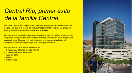 Ubicado en lo que previamente era el antiguo Toreo de Tijuana, Central Toreo forma parte de uno de los proyectos más innovadores y ambiciosos en la historia de la ciudad. Es el sitio ideal para que su empresa crezca, se desarrolle y alcance su máximo potencial en un entorno moderno y cómodo en donde tanto empresarios consolidados como emprendedores tendrán sus necesidades cubiertas para que se concentren en lo que realmente necesitan.