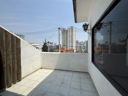 No tiene patio ni jardín. Pero en el 3er nivel tiene una gran terraza y balcón. Lugar para estacionar un carro, aunque en la cerrada pueden quedarse más autos.