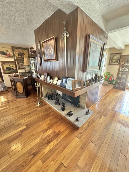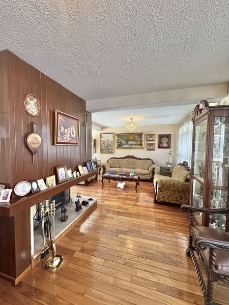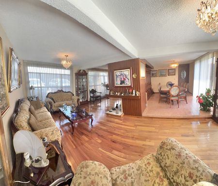 Con chimenea ventanales al frente y salida a terraza y jardín.