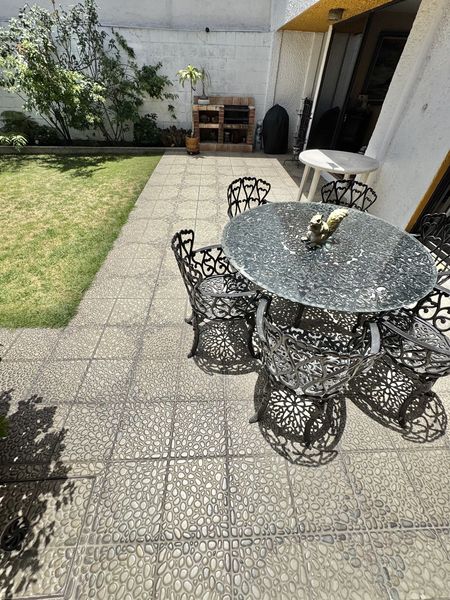 Casa huespedes Interdependiente en el jardín (acceso independiente): puede integrarse a la casa dependiendo gustos y necesidades, En la planta baja cuenta con cocina integral y estancia con oficina y biblioteca. En 2do nivel 4ta recámara, baño completo impecable, vestidor y balcón con vista al jadín.
