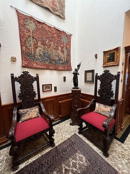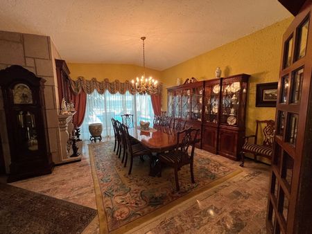 -ÁREA SOCIAL- Gran Foyer con doble altura, Sala informal con bay window y detalles de gobelino. Sala de 2 ambientes con muebles empotrados y espacio para piano de cola, vista al campo de golf. Comedor para 12 personas con chimenea de cantera. Salón de juegos con cantina y librero. Ambos abren a estancia exterior tipo veranda techada. Cocina gourmet con equipos de lujo integrados, Ante-comedor con guardapolvos de madera.