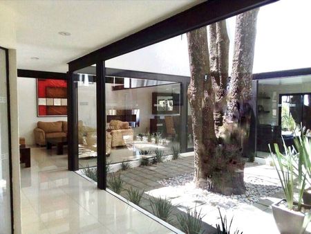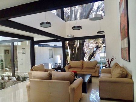 Esta preciosa casa tiene un diseño muy original, ya que cuenta con un proyecto arquitectónico desarrollado alrededor de árboles Encinos de más de 300 años. La casa tiene un patio interno que cuenta con un hermoso Encino, dándole preciosas vistas, mucha luz y amplitud a toda la casa. La sala, el comedor y el cuarto de TV se integran al patio exterior el cual tiene una hermosa vista.