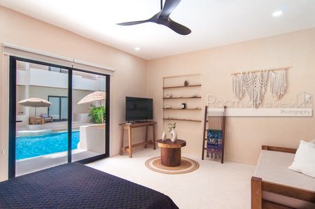 Esta elegante suite se encuentra dentro de un complejo estilo resort en la Región 15 de Tulum. Rodeada de exuberante selva y a tan solo minutos del centro y del nuevo camino hacia la playa, esta zona ofrece acceso rápido a la zona hotelera, ruinas mayas y cenotes. Es la ubicación es perfecta para amantes de la naturaleza y buscadores de aventuras que desean disfrutar del encanto relajado de la Riviera Maya sin alejarse de la acción.