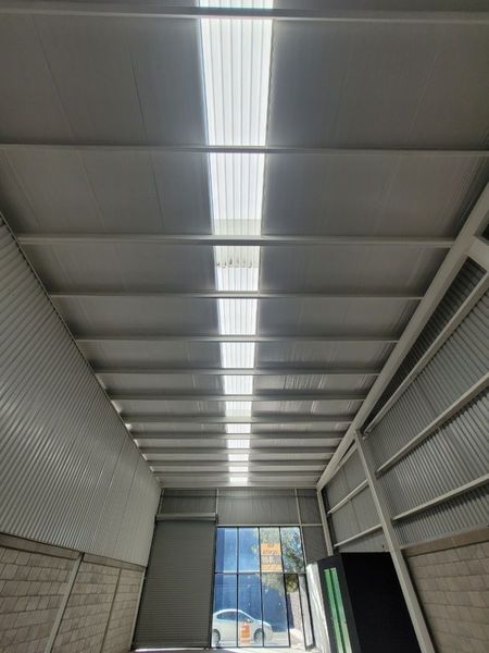 Armado de las naves en acero estructural. Plataformas en concreto pulido armado con capacidad de carga de 350 Kg/cm2. Muros de Block a 2.50m de altura y terminados en lámina de acero. Techos de lámina engargolada Tipo KR18 (anti filtraciones) con aislante térmico y láminas traslúcidas ahorradoras de energía.
