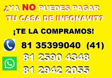 Ya no quieres continuar pagando tu casa piensas que fue una mala inversión Esta vandalizada. TEL:8135399040 - 8135399041 81 2590 4348-81 2590 4449 81 2942 2055