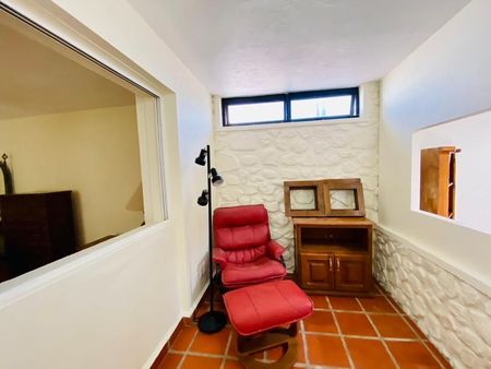 One room and a small independent study / office. In addition to a full bathroom, kitchen and dining room with fireplace. Furnished. In the common area inside the Complex, it has its own parking space, swimming pool and laundry room.