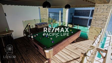El área de amenidades se encuentra en el 6to piso con: alberca, bar y área de asoleadero, una sala de juegos con mesa de billar.